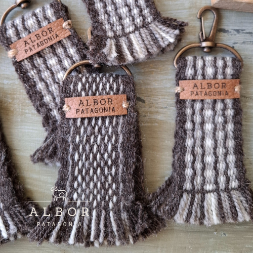 Cada porta llavero está confeccionado a mano en Puerto Madryn, Chubut, utilizando la técnica ancestral del telar vertical. Su trama compacta y su textura natural lo convierten en un objeto simple, resistente y lleno de historia.